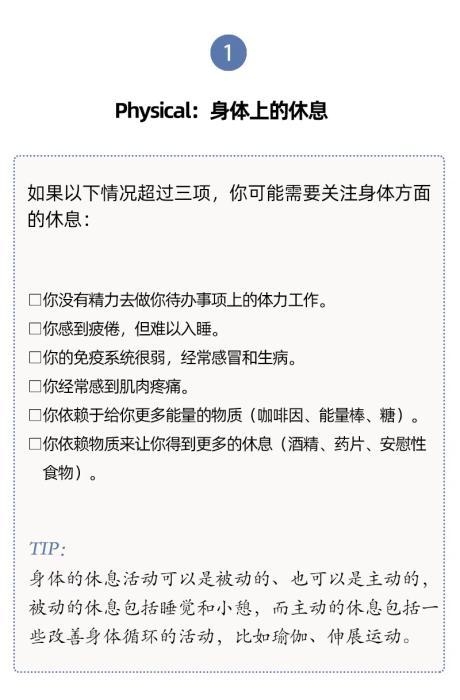 根据研究和临床经验,一些医生建议了 7 种休息方式来帮助我们确定需要哪一种。