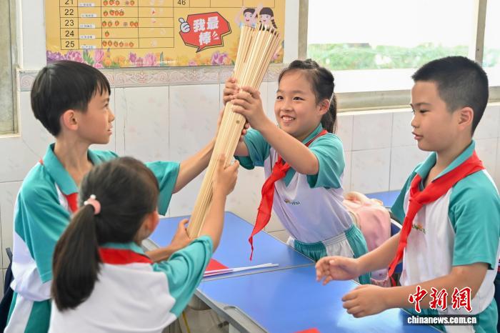 10月17日,为备战第十五届全运会、第十二届全国残疾人运动会和第九届特殊奥林匹克运动会,“把梦想、闪耀热情进校园”火炬校园宣传活动在广州市海珠小学举行,让师生近距离感受体育赛事之美。图为师生参加象征性火炬接力活动。中新社记者 陈继民 摄
